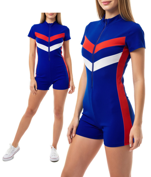 Агентство "Весна прокат" предлагает арендовать короткий комбинезон в цветах российского флага - белом, синем и красном. Модель выполнена из эластичного ткани, плотно облегающей фигуру и обеспечивающей комфорт в движении. Яркий дизайн в стиле триколор делает костюм эффектным решением для мероприятий с российской тематикой. Такой образ подойдёт для хостес, промоутеров и стендисток, работающих на выставках, спортивных и праздничных событиях, где нужно ярко визуализировать патриотическую тематику и усилить брендовый образ.