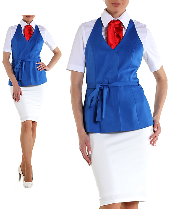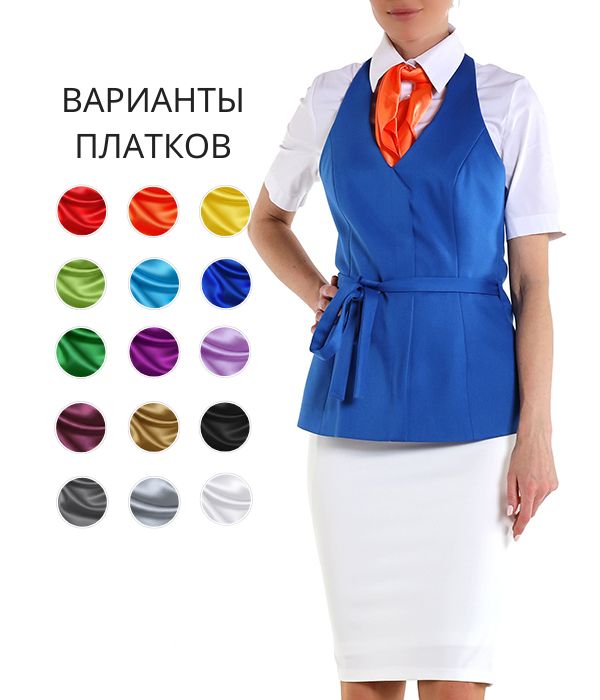 Жилет синий с юбкой и блузкой белыми и платочном оранжевым