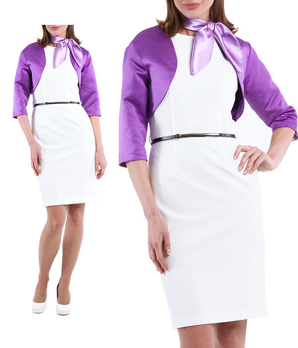 Платье белое с фиолетовым болеро и платочком сиреневым