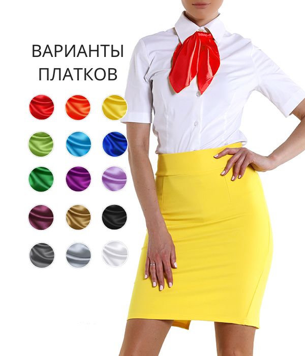 Блузка белая с юбкой желтой до колена и платочком красным